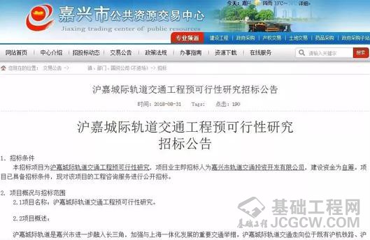 8月31日,“沪嘉城际轨道交通工程”就项目预可行性研究公开招标。