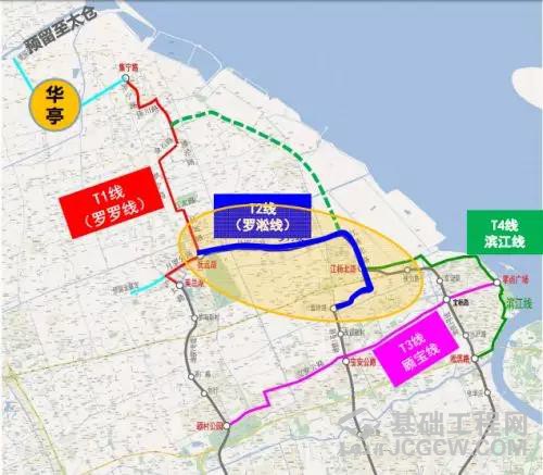 T2线(罗淞线):将连接轨交1号线富锦路站,3号线江杨北路站,连接宝山区东西向,服务月扬工业园区与月浦镇居民;