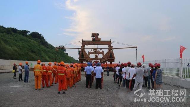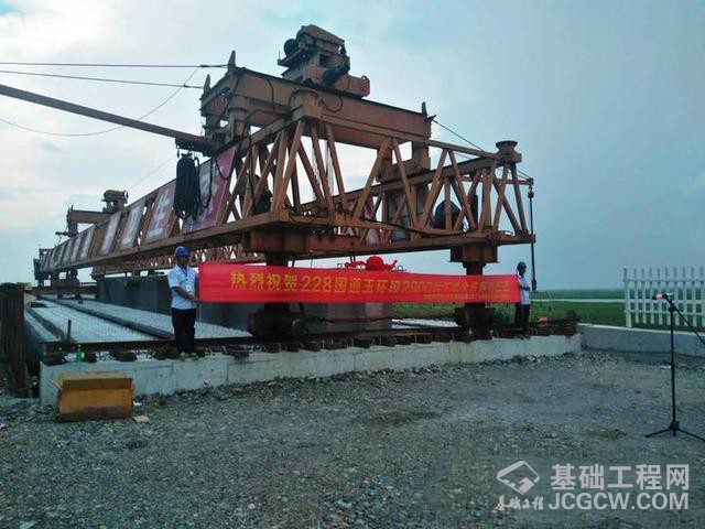 9月3日下午3时38分,玉环苔山随着吊机转动228国道玉环段第2900片T梁缓缓降落,平稳就位。