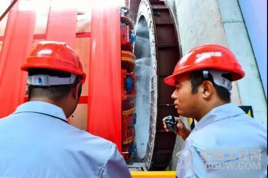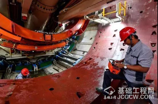 工作人员调试直径8.8米的“铁兵一号”盾构机。