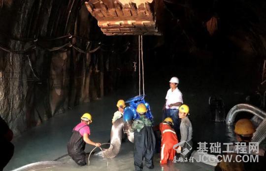 在红豆山隧道2号斜井口,九条直径超过20厘米的排水管正源源不断地向外排水,距斜井口1600米处,施工人员正站在齐腰深的水里操作大功率水泵。目前,隧道已经完成正洞掘进1317米,整体进度按照施工组织计划推进。