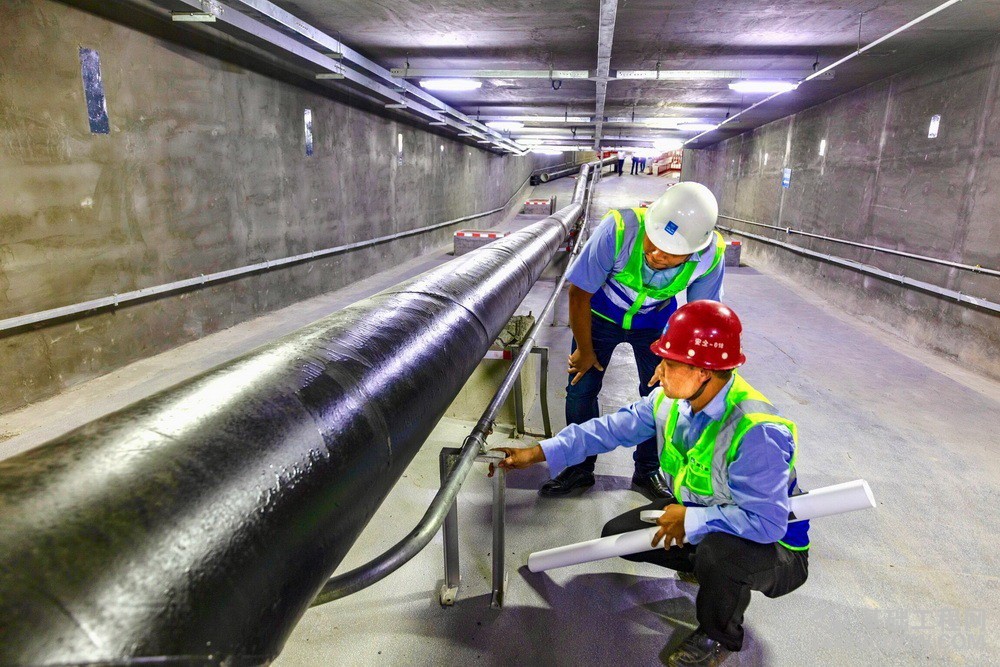 在建设过程中,施工方中建二局基础设施建设投资公司工人们还根据现场地形创新采用管廊桥形式,经反复验算确定修建全球罕见管廊桥,现浇三舱式箱型梁管廊专用桥主体结构施工完成,标志着全球首例喀斯特地貌“管廊桥”建成。