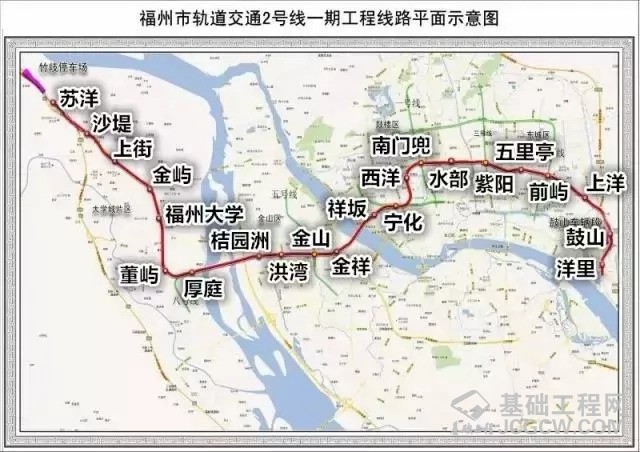 2号线:福州主城区范围轨道交通东西向主轴骨干线。线路全长52.0km,设站35座。途经大学城、金山、鼓台核心区、晋安、马尾等组团,连接大学城、福州展览城、金山文体中心、五一广场、马尾体育馆、船政文化景区、马尾城市中心广场等重要节点。项目沿福州市东西向主客流走廊布置,连接福州市主要文教科研区、主要工业区、历史文化发展中心、大型居住区,对于缓解福州中心城区东西向交通压力,引导和巩固上街大学城、金山工业区、金山居住区、马尾新城的开发建设,引导晋安区的改造、升级具有重要作用。
