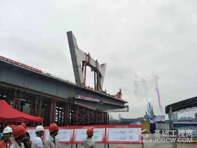 据了解,中兴大桥主桥采用一跨过江矮塔斜拉桥,主塔采用钢结构V型塔,斜拉索共设36对。中兴大桥后续中跨剩余的23个节段,将利用轻量化设计的桥面吊机进行安装,并同步对称张拉斜拉索。