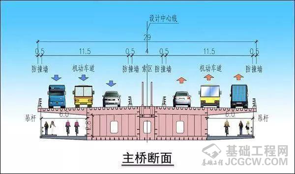 工程全长约2.6公里,按双向6车道标准建设。其中桥梁长约1.8公里,主桥全长700米,全宽29米,主跨400米,主桥设上下匝道两对。工程建设总投资26.3亿元,其中建安费为8.87亿元,工期为3.5年。