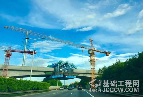 跨龙大高速悬灌梁为四线道岔梁,桥面宽度达22米,采用菱形挂篮悬臂浇注施工,地铁6号线与龙大高速在此交汇,桥梁上跨高速公路和光明大道。