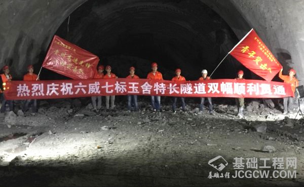 9月21日12时,历经896天的日夜奋战后,六威高速公路第七合同段玉舍特长隧道左幅贯通,标志着玉舍隧道实现双幅贯通。