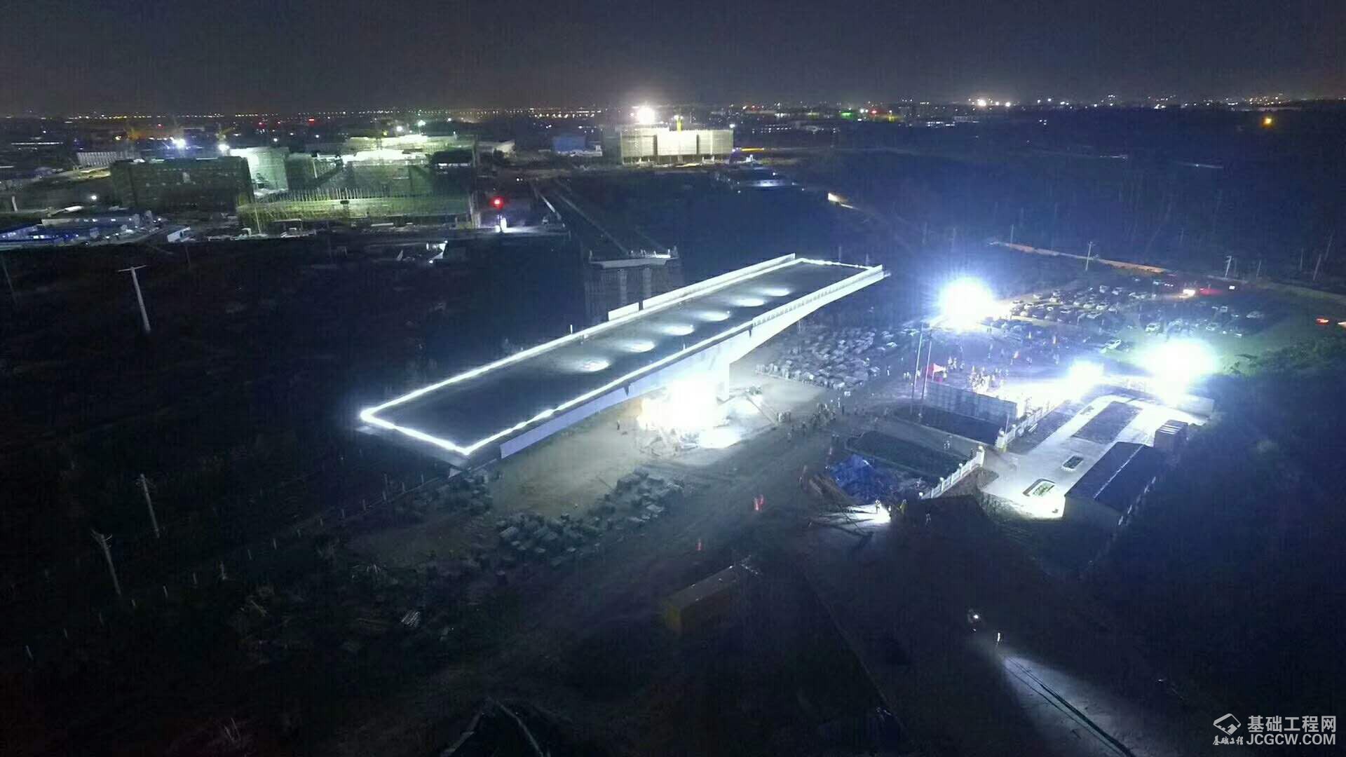 万吨块头凌空跃,连接通途助力飞。9月26日22时,山东省内最重的双薄壁墩型市政转体桥在胶州市南六路跨胶济铁路施工现场实施转体,经过100分钟Ⅱ级封锁要点施工,以每分钟1度的速度逆时针旋转49.9度,50分钟后,成功实现空中精准对接,打通了青岛胶东国际机场最后一公里。