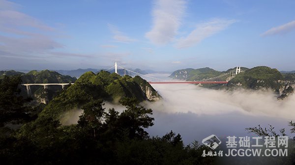 为此,湖南省交通规划勘察设计院有限公司发明“轨索滑移法”安装桥梁构件,85天架梁完成;塔梁分离技术,降低路线高度,节省工程造价,减少开挖土地67万方,节约土地资源;发明了峡谷风场观测技术。依托大桥发明的“轨索滑移法”被世界公认为悬索桥施工的“第四种方法”,是具有“中国首创”意义的原始创新性成果。