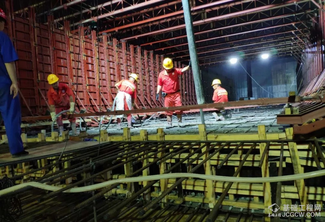 经过近16个小时的连续奋战,9月23日,金光东隧道项目长达20米、重达2000多吨的E6管节第一段混凝土浇筑完成。当天,业主代表、监理以及其他有关施工单位技术人员到现场观摩。
