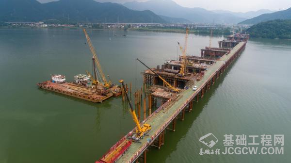据了解,富春江大桥主桥采用群桩基础,桩基为钻孔灌注桩。主桥桩基共81根,平均桩长约37m,主墩桩径2.2m,过渡墩桩径2m。桩基工程是富春江大桥的关键工程,面对时间紧、任务重、水位深、高温天气多等重重困难,承担大桥施工任务的西复线杭绍段参建单位齐心协力,克服了水文地质条件复杂、汛期台风等不利因素,多次召开专题会议,对施工的每一道工序进行深入研究,优化施工方案,并组织开展培训及安全技术交底,合理安排施工任务,,为按时完成施工任务提供了强有力的支持和保障。