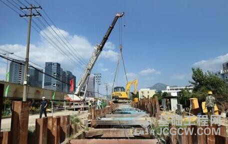 目前,泵车、罐车、钩机等来来往往,基坑内施工人员正在安装模板,为晚上的浇筑作好准备。甘歆洁告诉记者,该段多为淤泥地层,管廊浇筑前得做地基加固。在地基加固时,管廊施工同步推进,已完成90米长的底板浇筑、40米的综合管廊施工。
