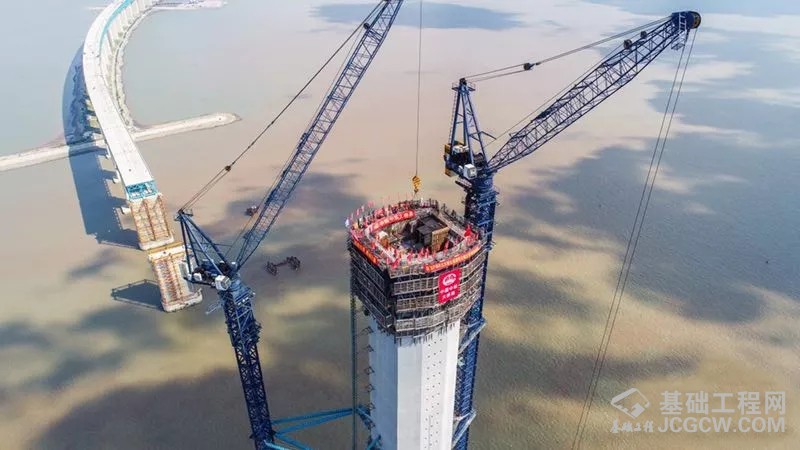 本次北侧主塔施工结束后,大桥将进入钢梁架设和斜拉索挂设施工阶段。