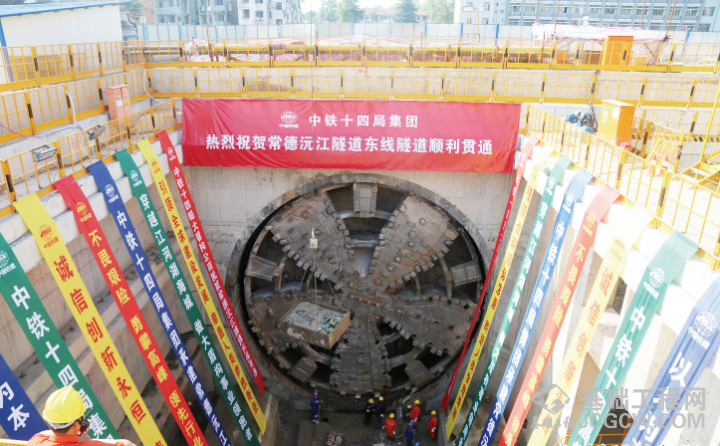 经过9个多月的施工,10月9日23时,“沅安”号盾构机刀盘破土而出,湖南常德沅江隧道东线顺利贯通。10月11日上午,贯通仪式在隧道江北出口举行。