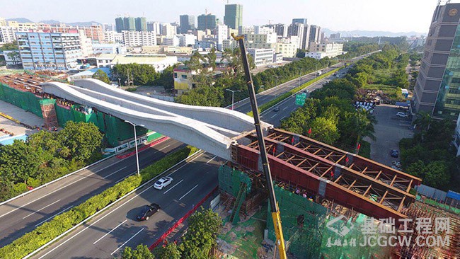 核心提示: 4600吨重梁桥成功跨过高速公路 日前,历经12小时的连续施工,中国中铁广州局建设者们推着4600吨重的梁桥安全平稳顶进89米