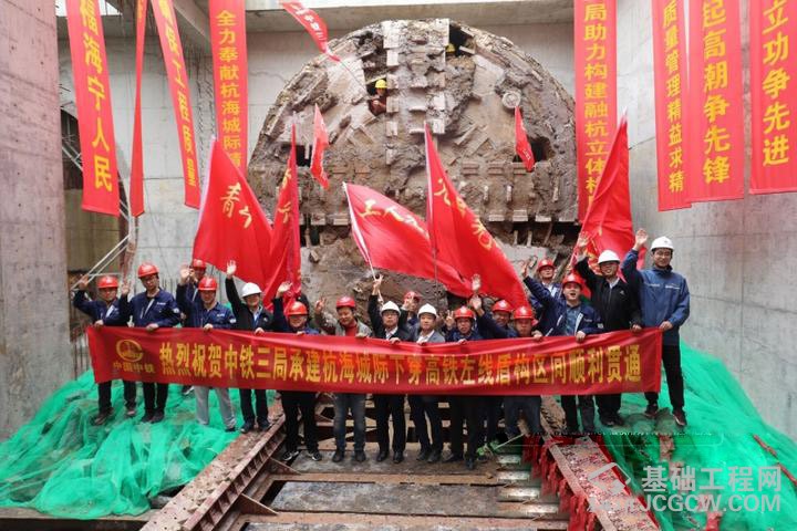 记者在杭海城铁四标现场看到,这条下穿高铁段盾构区间,线路呈东西走向,区间左线全长672米,左右线线间距11至24米,隧道线路纵坡设计为“V”型坡。当天,中铁三局桥隧公司全体管理人员整装列队,高举青年突击队队旗,悬挂鲜艳的标语,在欢庆的气氛中迎接盾构贯通。