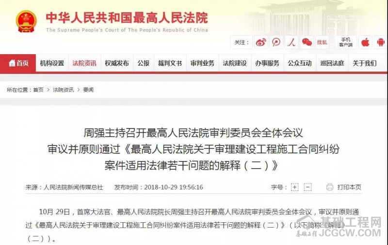 近日,首席大法官、最高人民法院院长周强主持召开最高人民法院审判委员会全体会议,审议并原则通过《最高人民法院关于审理建设工程施工合同纠纷案件适用法律若干问题的解释(二)》(以下简称《解释》(二))。