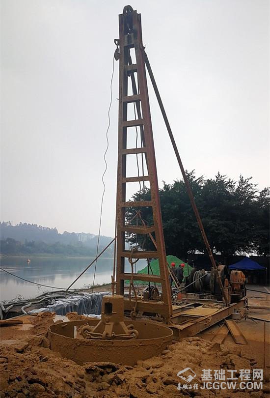 在9号桥墩施工现场,河岸上一台打桩机正在连续作业,另外一台打桩机很快也将投入运行。乐山城投集团工作人员介绍,9号墩桩基位置不在水中,地质情况与水下不同,在保证安全和质量的前提下,采取相应措施可以间断施工。为有效降低项目施工噪音对周围居民的影响,打桩机运作时间将控制在每天早晨7点至傍晚7点。