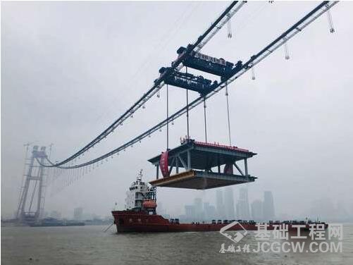 核心提示: 11月15日,随着两台缆载吊机将长36米、宽32.5米、高10米的钢梁,提升至武汉杨泗港长江大桥指定高度,由此拉开这座世界最大跨