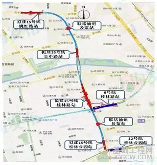 轨交15号线是一条南北走向的局域级线路,沿线经过宝山区、普陀区、长宁区、徐汇区、闵行区等5个行政区。其中,吴中路站—姚虹路站区间是姚虹路—吴中路—桂林路—桂林公园站三个区间的始发区间。