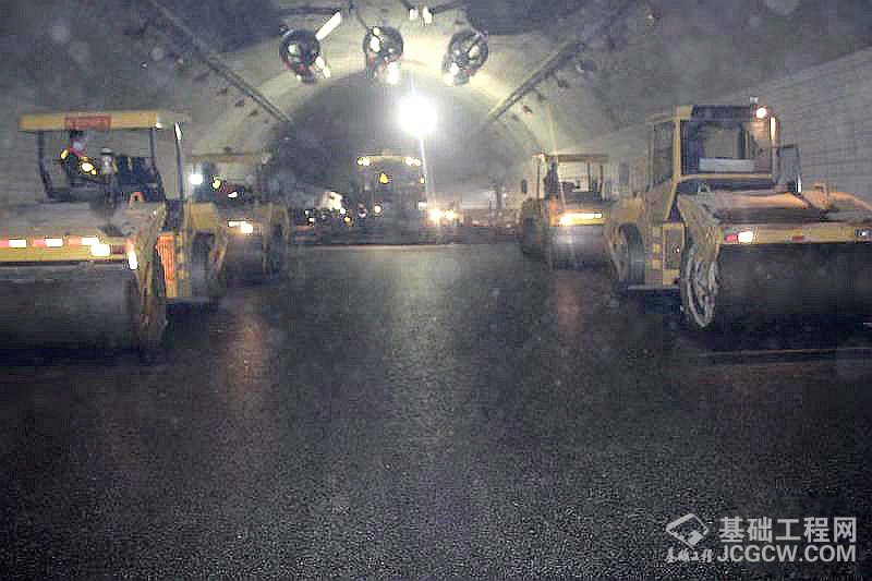 仁博高速公路是武(汉)深(圳)高速公路的一部分,也是广东省“九纵五横两环”高速公路主骨架中的“四纵”中的主干高速公路中的重要一段,建成后对增强珠三角与粤北地区、湖南省乃至我国中南地区的经济辐射具有重要作用。仁博高速公路九连山隧道起讫桩号为K381+475-K386+985,单幅全长5.51km,双幅施工全长11.02km,采用基层:24cmC40混凝土;防水层:增强纤维沥青防水粘结层;沥青下面层:AC-20C改性沥青混凝土;粘层:SBS改性乳化沥青(PCR);沥青上面层:4cmSMA-13沥青玛蹄脂;2层沥青面层摊铺碾压施工工艺。