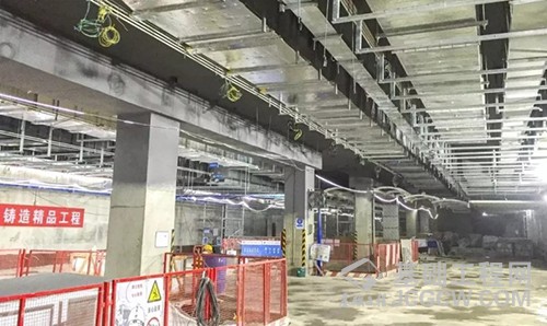 高新南站在半个月的时间里实现了现场进度的大转变,公共区风管、电线管、桥架、消防水管、空调水管道已连通,环控机房设备已基本就位,现场大面积形象进度已初具规模。