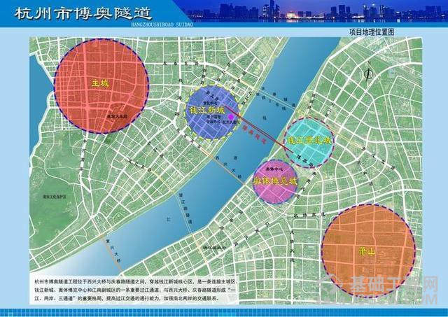 博奥隧道工程由杭州市钱江新城建设管理委员会和杭州市萧山区人民政府共同出资,项目位于钱江三桥和庆春路过江隧道之间,北起钱江新城新业路与富春路交叉口,南至钱江世纪城博奥路与平澜路交叉口。