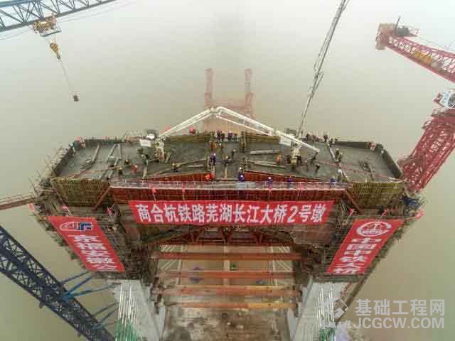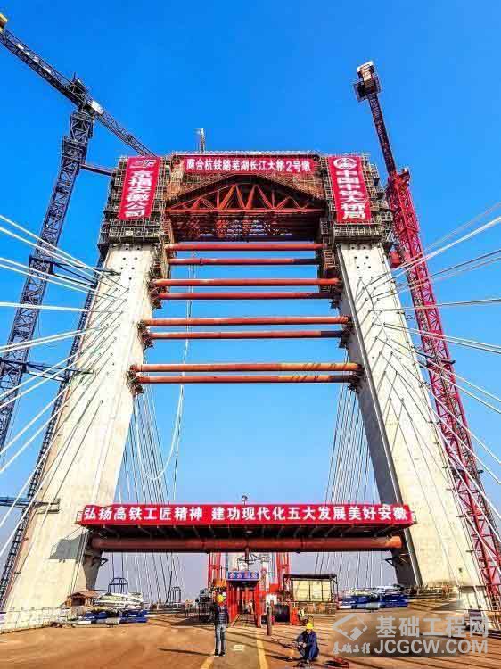 商合杭铁路芜湖长江公铁大桥北主塔成功封顶