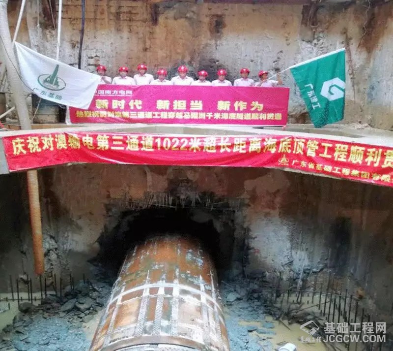 本顶管项目作为整个工程的咽喉控制节点,顺利贯通意味着对澳输电第三通道工程中技术含量最高、复杂程度最大的一项工序顺利攻克。顶管施工中运用了多项先进技术,千斤顶动力系统提供足有1600吨的推力,还综合运用了GPS定位、全站仪自动测绘、激光经纬仪多种方式进行复核。通过精确测量、数据分析和顶管机的自动纠偏系统,避免了管节非刚性连接带来的沉降和偏斜;通过增加海水宝外加剂及调整触变泥浆配比,提高泥浆的胶体率、提升海水泥浆的粘度、同时改善泥浆的流变性,克服了减阻泥浆在海水环境中的稳定性,大大降低了顶管顶力;通过与通讯公司共同制定通讯方案,创新了通讯方式,解决了管道内无线对讲信号覆盖难题,确保了千米隧道内与地面沟通无障碍;首次引进制冷式加压通风设备在顶管施工中的应用,解决了隧道内通风问题,改善了隧道内的施工环境;通过智能控制多台管道泵的联动方式,实现了管道泵的启动顺序,合理解决了循环泥浆的输送难题。