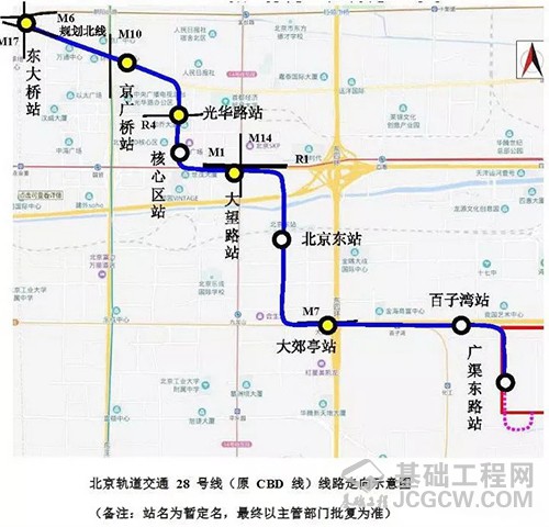 此外,28号线在东大桥站可以换乘已经运营的6号线和正在建设的17号线,在光华路站可以换乘规划中的R4线,在大望路站可以换乘1号线和14号线,在大郊亭站可以换乘7号线。