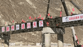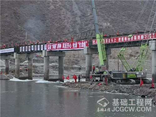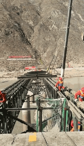 11月30日上午11点,经过7个昼夜连续奋战,国道318线金沙江竹巴笼战备钢桥成功合龙。