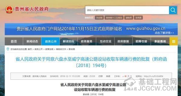 核心提示: 12月11日,贵州省政府官网公布《省人民政府关于同意六盘水至威宁高速公路设站收取车辆通行费的批复》。根据批复,六威高速公