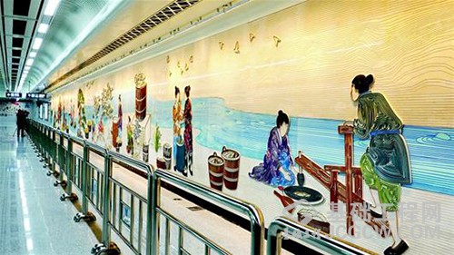 走进谭鑫培公园站,京剧《托兆碰碑》《洪洋洞》《桑园寄子》等9个经典剧目的脸谱展现在艺术墙上,这些均是京剧大师谭鑫培的经典剧目。该艺术墙还会“唱戏”,设计者们首次采用跨界合作形式,通过寻访谭门故里,邀现代戏曲班底演绎经典唱段,通过采集声音,将经典唱段带进地铁内。当市民靠近艺术墙上的任何一唱段场景,一旦发生技术感应,艺术墙就会再现这段京剧。