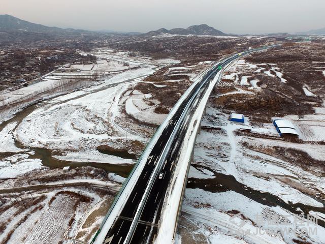巍巍太行,瑞雪普降,银装素裹,苍茫壮观,太行山高速公路穿山而过,玉带蜿蜒。