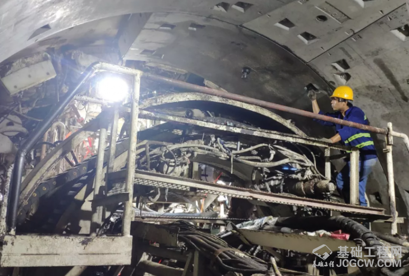 盾构下穿过程,现场实行24小时值班机制,技术人员严格控制每一环掘进参数,并同步做好注浆加固工作。经过600多个小时的连续奋战,地铁建设者们以最严谨的态度和精细、高超的管控,顺利破除困难,确保地铁隧道安全穿越北环高速桥涵。