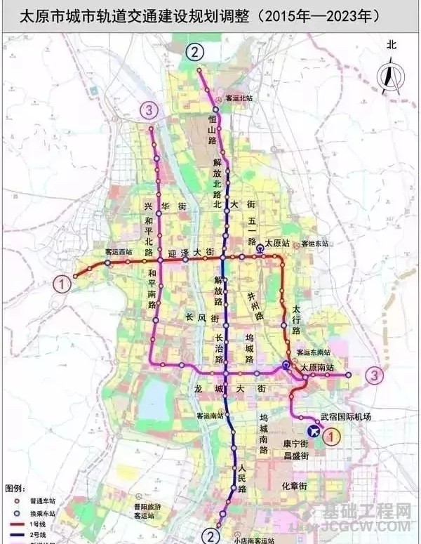 晋阳街站:位于长治路与晋阳街交叉口,是2号线与3号线同期施工的明挖的T形换乘车站,车站长231米,宽23米;