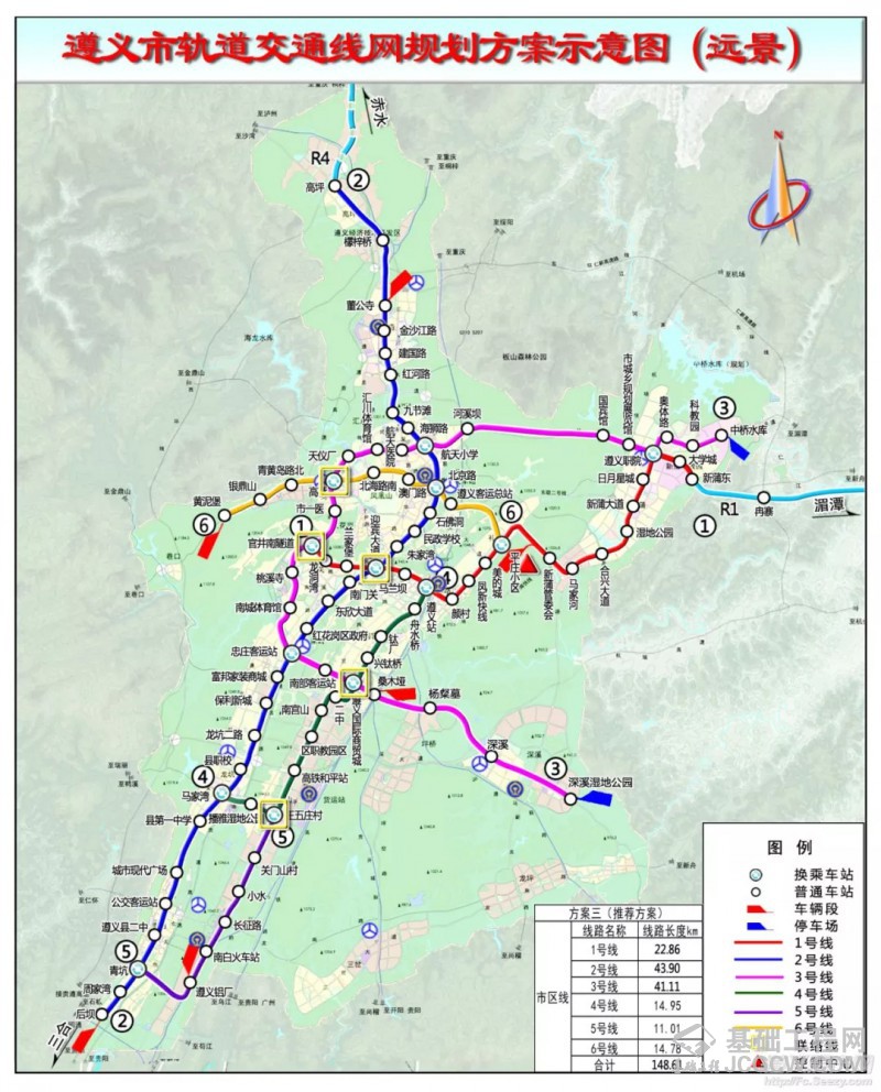 据介绍,遵义市中心城区轨道交通线网远景共有6条线,长度为148.61公里,共设站100座,其中换乘站13座。3号线为新蒲官庄水库至深溪湿地公园,4号线为遵义东站至马家湾,5号线为王五庄村至青坑,6号线平庄小区至黄泥堡。