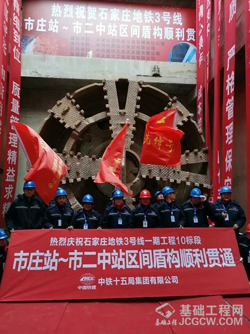 1月21日上午,在市二中站附近的盾构接收现场,市庄站~市二中站左线盾构的顺利抵达宣告着3号线一期北段工程实现“洞通”。柏林庄站、市庄站、以及柏林庄~市庄站区间、市庄站~市二中站区间均由中国铁建十五局集团城轨公司承建。建设方负责人表示,该标段包含的两个盾构区间沿中华大街从柏林庄站往南到已投运的市二中站,沿途有中华大街高架、铁路隧洞、和平路高架,并先后下穿电力、燃气管廊及既有石太铁路线路共三个一级风险源。其中完成了在石家庄尚属首次的五股道铁路线的双线下穿,同时也是地铁3号线唯一一次下穿铁路线。该地段隧道断面地质情况对沉降和盾构施工要求极高。