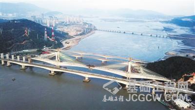 1月23日23时30分至24日3时30分,中铁十八局集团三公司承建的我国铁路跨度最大矮塔刚构斜拉桥——福(州)平(潭)铁路乌龙江特大桥合龙。福平铁路建成通车后,将大大缩短福州至平潭的时空距离,形成半小时“生活圈”和“经济圈”。图为乌龙江特大桥。