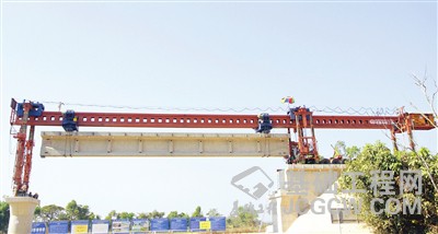 当天,一个32米T梁在楠科内河特大桥两座桥墩成功落定,标志着架梁施工正式开始。