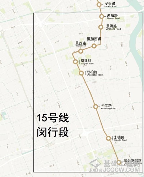 在闵行区境内有4个车站,大约20多公里下面就是上海轨道交通15号线在闵行区境内的线路图。