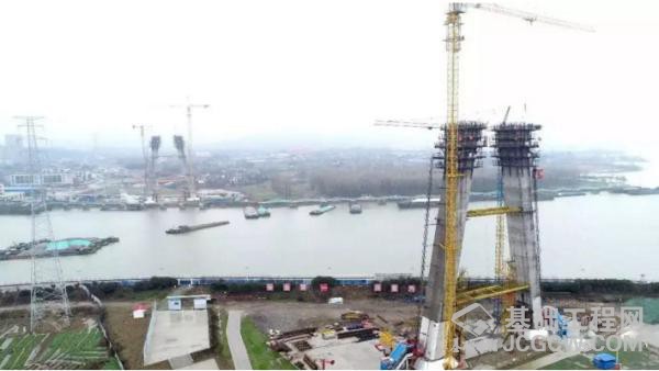 目前,巢湖大桥全桥152根桩基、22个承台、24幅地下连续墙都已全部完成,28个墩柱也已完成12个,占设计的42.9%,塔柱65节已完成30节,占设计的46.2%,全桥预制桥面板共1258块,已完成设计的49.3%,工程已经完成产值2.3亿元。