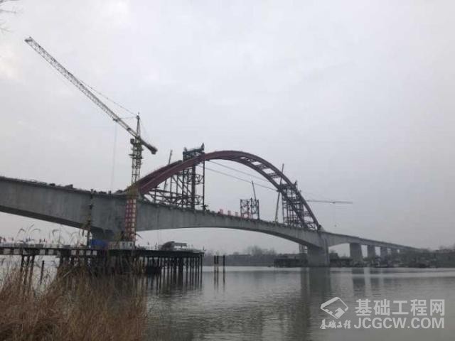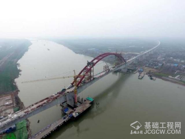 寿县境内商合杭高铁跨淮河特大桥钢管拱顺利合龙