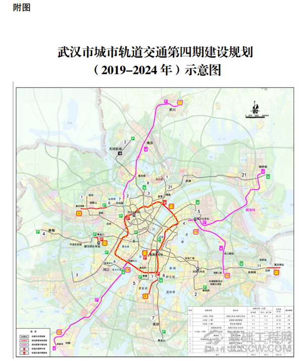 2019年1月4日,国家发改委网站发布公告,正式批复武汉城市轨道交通第四期建设规划(2019-2024年),根据批复的规划显示,到2024年武汉市将新建轨道交通线路14条,共计里程数达606公里。