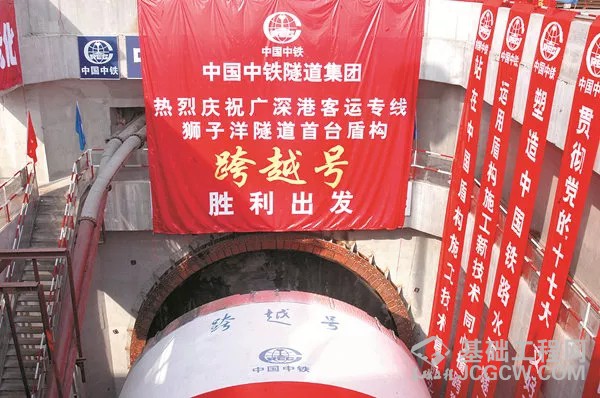 ▲2007年11月,狮子洋隧道首台盾构机“跨越号”出发