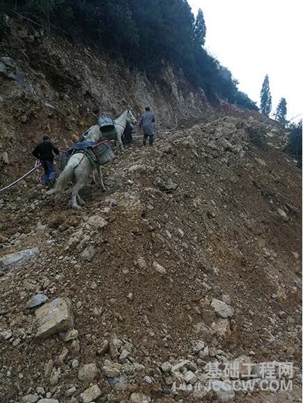 “蜘蛛人”悬崖上作业 初期材料运送靠马驮
