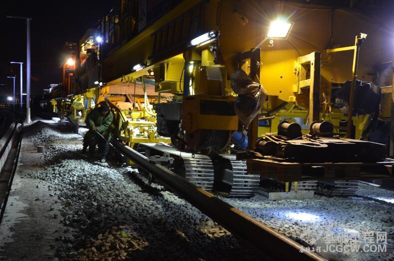 据中铁二十局二公司项目部铺轨负责人王延波介绍,大坡度铺轨采取了对铺轨机机组设备局部进行了动力改进,钢轨下方增加滑轮以减小受力的举措确保铺轨进度。30‰大坡度就是铺轨1000米,线路要相对抬高30米,崇礼铁路主要是上坡铺设长轨。有砟轨道铺设完成后,还要进行补砟、大机捣鼓等多道工序,施工任务异常艰巨。