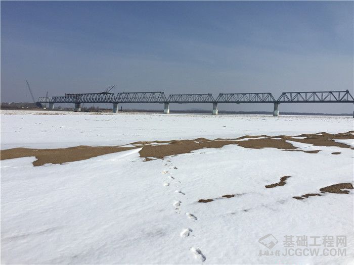 同江中俄铁路大桥是黑龙江省第一座与俄罗斯相通的跨境铁路大桥,工程位于佳木斯市同江市哈鱼岛,与俄罗斯犹太自治州下列宁斯阔耶隔江相望。同江大桥工程中国境内线路全长31.62公里,工程包括黑龙江特大桥一座、三村特大一座、引线及站场相关工程。其中,黑龙江特大桥全长7500米,贯通中俄国境,主桥(钢桁梁部分)共有20跨,全长2215米,中方负责施工17跨(长1886.45米),俄方负责施工3跨(328.57米)。主跨144米钢梁跨越中俄国界线,由中方负责钢梁架设施工,其中有13.6米处于俄方境内。