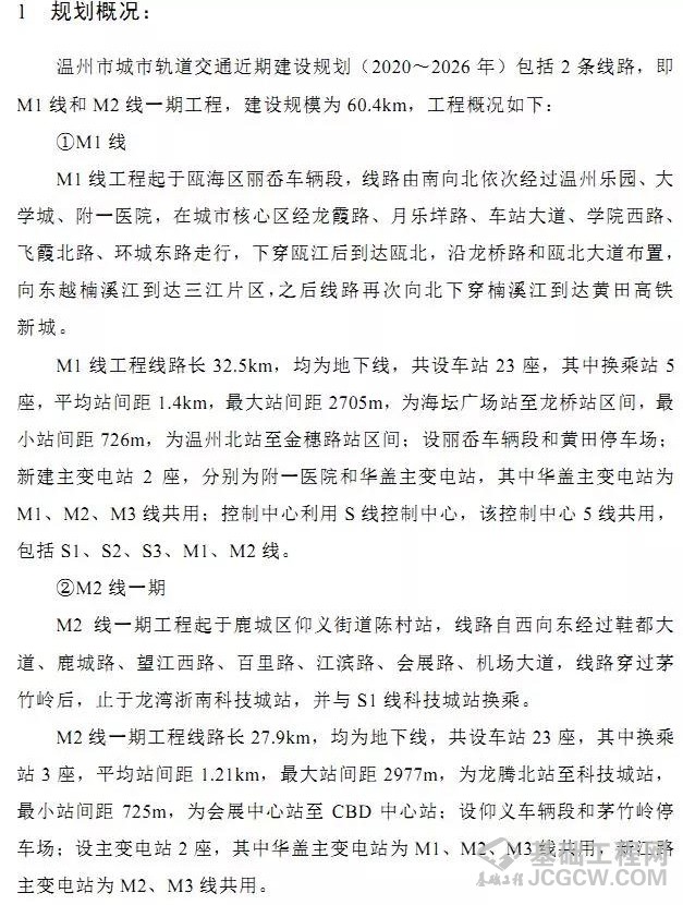 【规划概要】温州市城市轨道交通近期建设规划(2020~2026年)包括2条线路,即M1线和M2线一期工程,建设规模为60.4公里。其中: