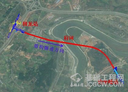 钓鱼嘴站~回龙站区间左线长1923m、右线长1930m,为11号线一期工程最长盾构区间,地质情况复杂,危险源密集。其中,下穿府河为特别重大危险源,水深约3.6米,河床高低差大,隧道顶端与河底竖向间距最浅处仅7.6米,下穿长度达221米。掘进过程风险极大,有可能导致隧道漏水,或将击穿河底,以及其他安全风险。